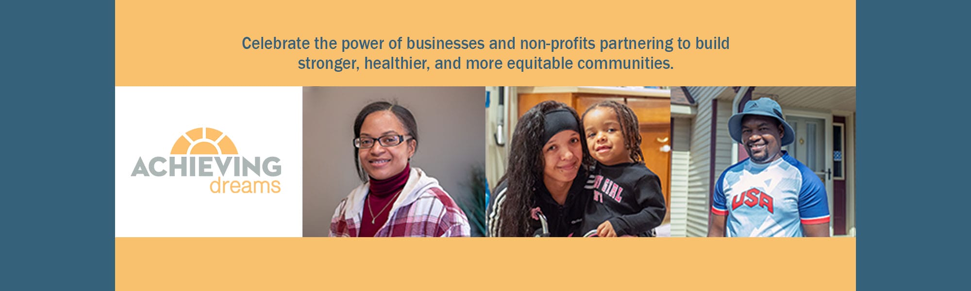 Decorative slider image with Avivo's Achieving Dreams breakfast logo and the smiling faces of three successful Avivo program participants.