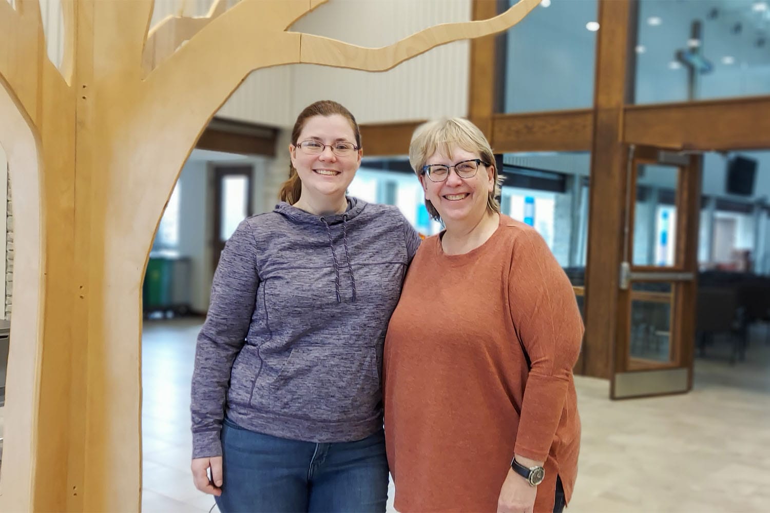 Kat Vann (pictured on the right) coordinated a donations drive of household and hygiene items for residents moving into Bimosedaa, new affordable housing developed to serve Native Americans experiencing homelessness.